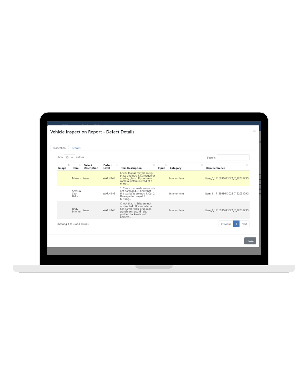 - Individual logins for each driver/inspector