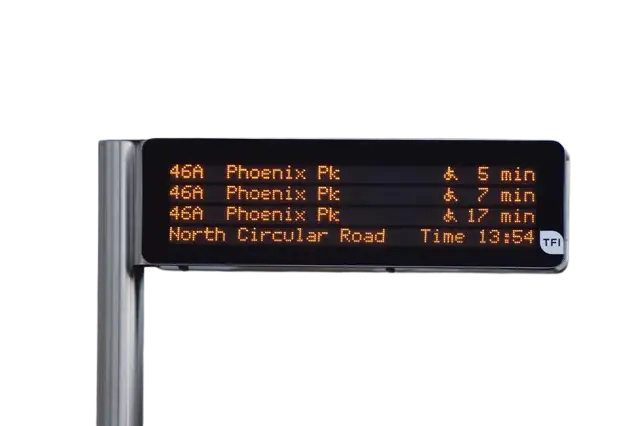Usually located outside the bus stop, this panel is loaded with GTFS and SIRI data to provide an accurate real-time time table that is relevant to each stop. It commonly displays the estimated arrival time of the next few buses arriving at the stop.